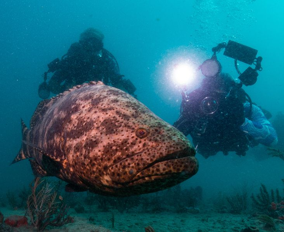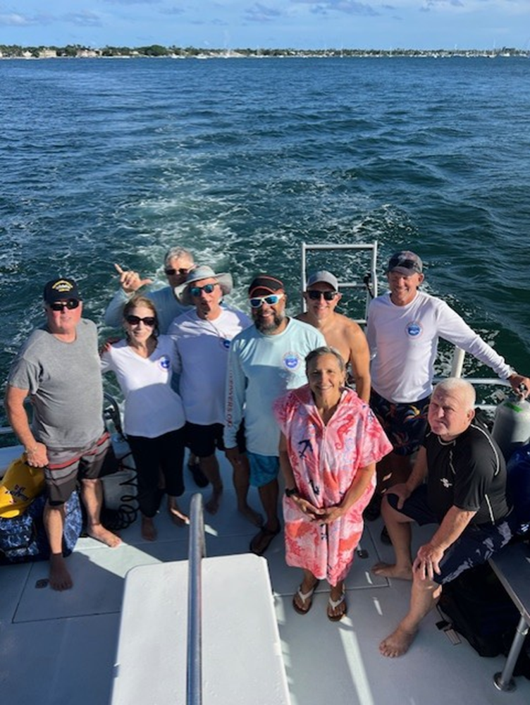 This past Sunday, a group of nine divers set out with Walkers Dive Charters for a chance to see the Goliath Groupers usually patrolling the local wrecks. The adventure began at the marina, where a couple of early arrivers got to witness a beautiful eagle ray sauntering in the marina. All patiently waited to board The Wetter The Better, our trusty dive boat for the day. The weather couldn’t have been more perfect—clear skies, calm seas, and not a drop of rain in sight.