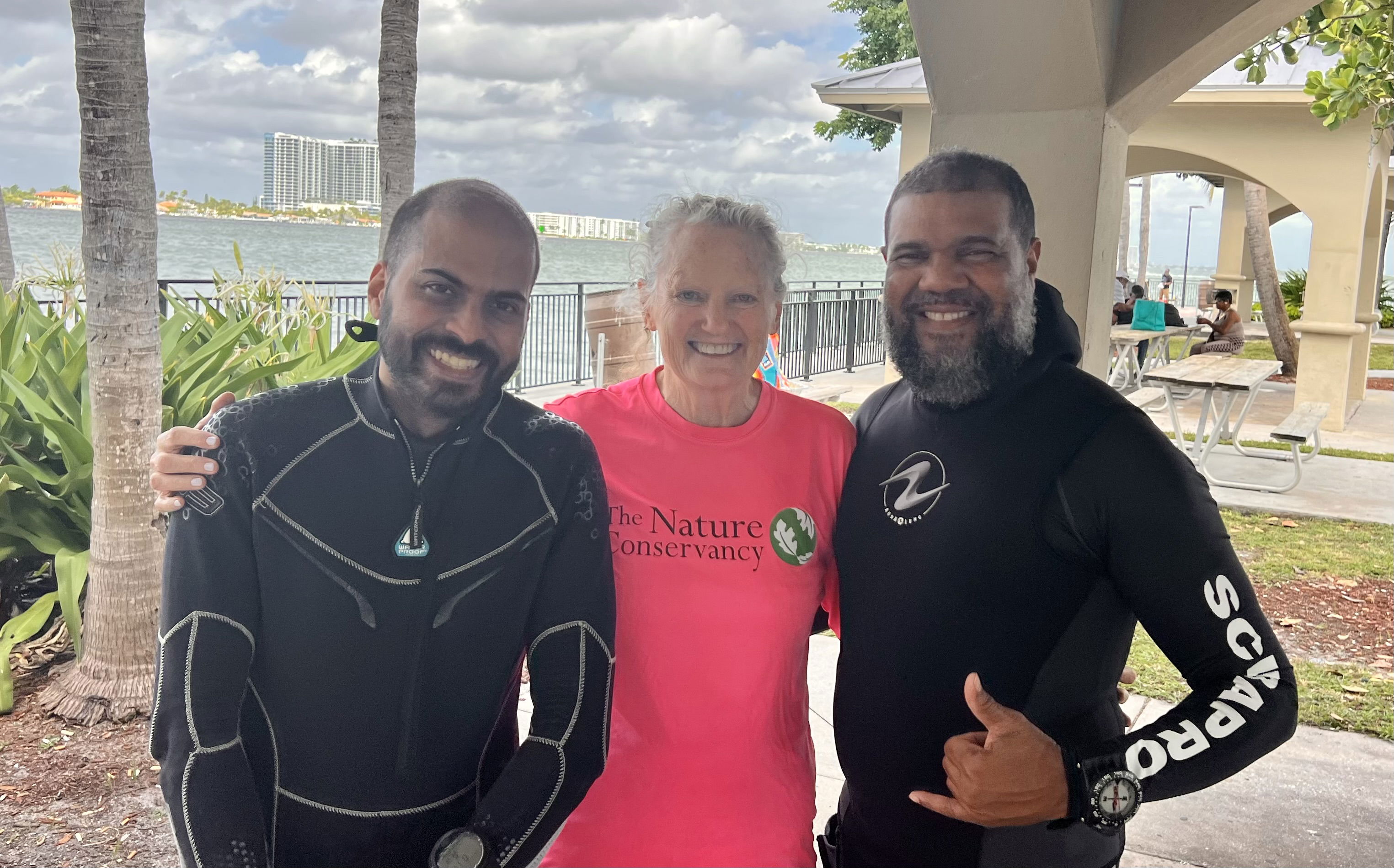 Three divers took the plunge (from left) Federico Quintana, Rachel Davis, Jonathan Hilliard.